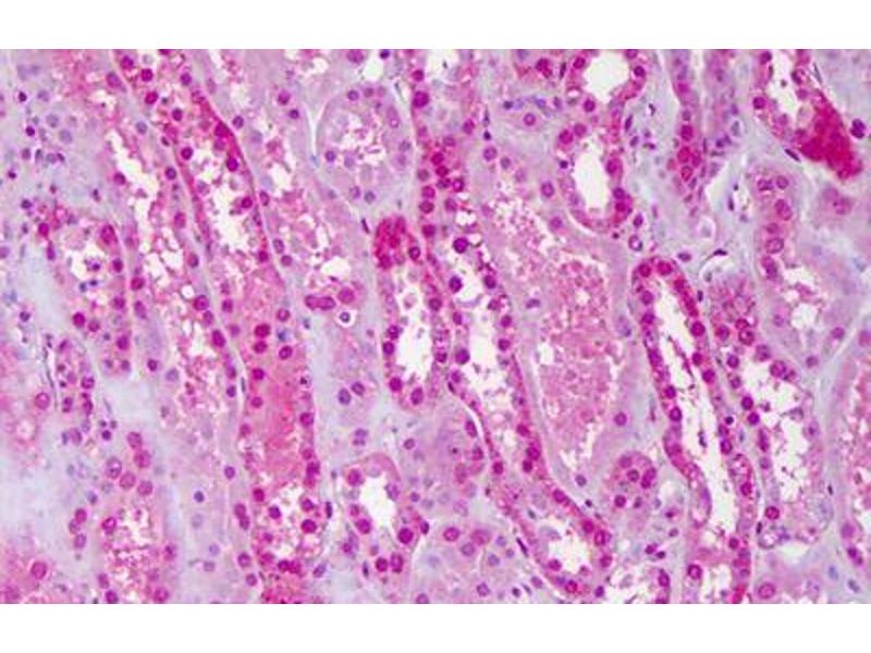 Usage: Immunohistochemistry: Formalin-fixed paraffin-embedded sections. Sandwich ELISA: Recombinant protein. Western Blot: Cell lysate, Recombinant protein. -