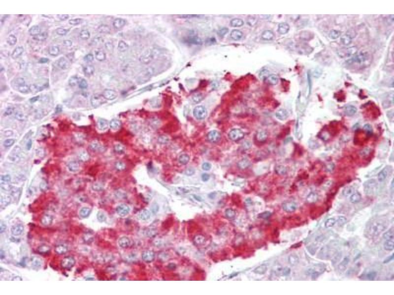 Usage: Peptide ELISA: antibody detection limit dilution 1:32000. Western blot: Preliminary experiments gave an approx. 26 kDa band in Human Skeletal Muscle lysates after 1 μg/mL antibody staining. Please note that currently we cannot find an explanation in the literature for the band we observe given the calculated size of 52.9 kDa according to NP_116274.3. The 26 kDa band was successfully blocked by incubation with the immunizing peptide. -