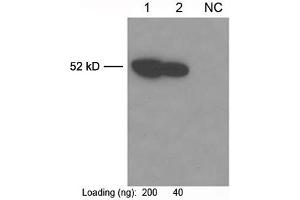 Working concentrations for specific applications should be determined by the investigator. The appropriate concentrations may be affected by secondary antibody affinity, antigen concentration, the sensitivity of the method of detection, temperature, the length of the incubations, and other factors. The suitability of this antibody for applications other than those listed below has not been determined. The following concentration ranges are recommended starting points for this product. ELISA: 0.05 µg/mL-0.2 µg/mL Western blot: 0.1 µg/mL-1 µg/mL Western blot using ONE-HOUR Western Kit: For quick results, ONE-HOUR Western Kit L00205C is recommended. 0.9 µg of this antibody is mixed with diluted WB solution (dilute 1.5 mL WB with 1.5 mL of PBST).Immunoprecipitation (IP): 1 µg/mL Immunofluorescent staining: 1 µg/mL Other applications: user-optimized