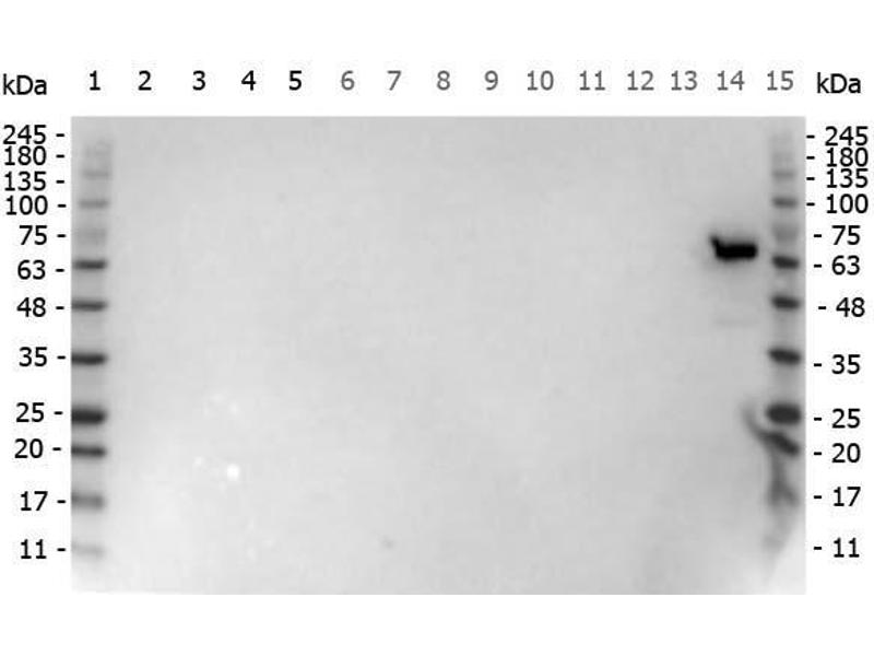 Application Note: Anti-Luciferase Antibody has been tested in Western Blot, IHC, IF, and ELISA. Expect a band ~60 kDa in appropriate cell lysates. Although not tested, this antibody would be useful in immunoprecipitation, immunocytochemistry, and most immunological methods requiring high titers and specificity.
