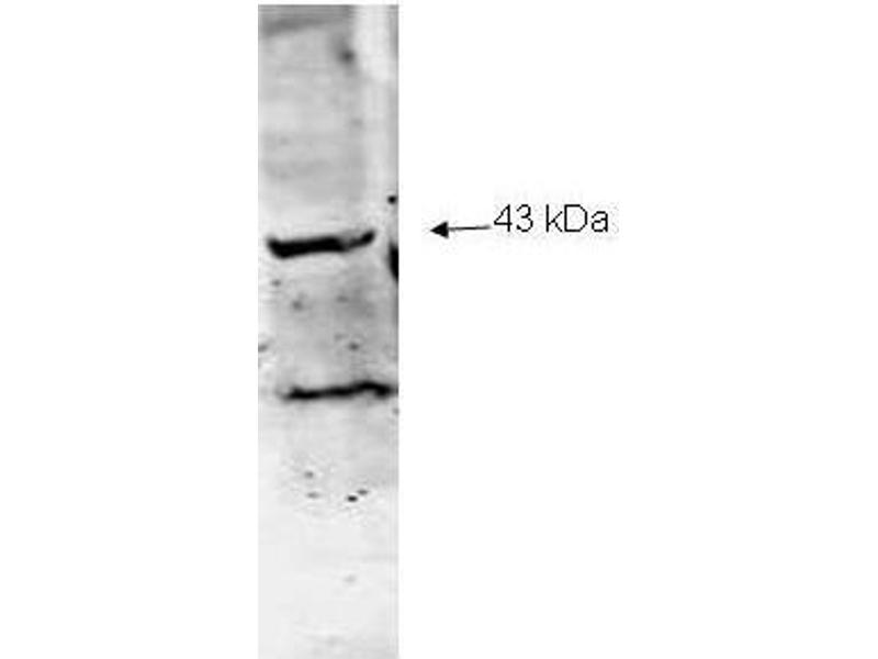 Application Note: Anti-NEU2 Antibody is has been tested by western blot and ELISA and suitable for immunocytochemistry and immunoprecipitation, transfected cell culture, and primary cell culture. A single band of the expected apparent molecular weight (43 kDa) was observed at a 1:500 dilution incubated for 1 h at room temperature. A second lower molecular weight band may represent a truncated form of this protein. Neuraminidase is not very abundant in most tissues and its detection using this antibody may require further optimization. Researchers should determine optimal titers for other applications.
