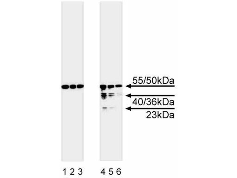 - 55/50 kDa, 40/36 kDa, 23 kDa