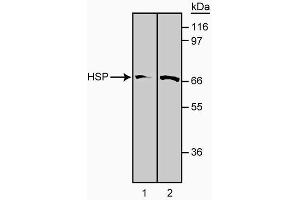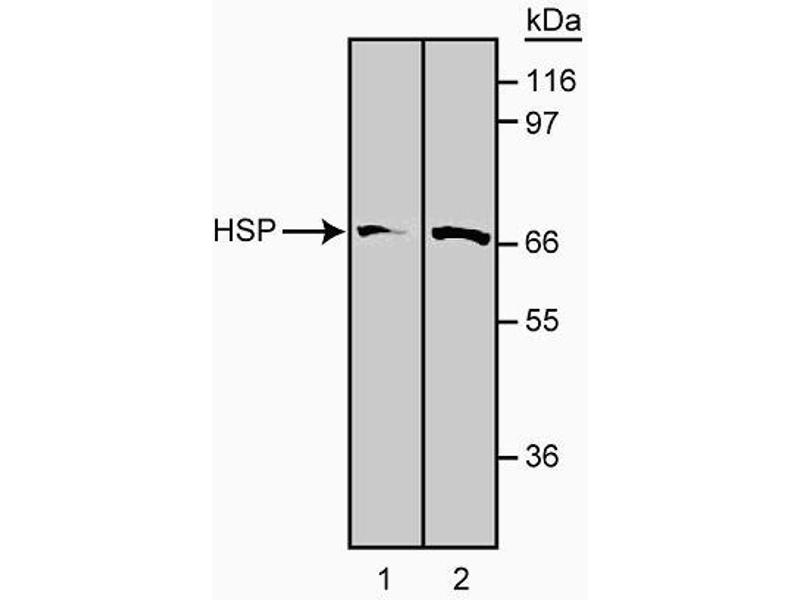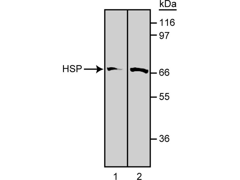 - Cells from many organisms increase the expression of heat shock or stress proteins in response to adverse changes. The heat shock protein (HSP) 70 family consists of multiple members, localized within different intracellular compartments. HSP 70 is constitutively expressed in many human cells with increased expression observed following stress. Members of the HSP 70 family bind ATP, and are thought to function as molecular chaperones by assisting in the folding of other proteins in various intracellular compartments. HSP 70 migrates at a molecular weight of 70 kDa in SDS-PAGE. The 5G10 antibody recognizes human HSP 70. Purified HSP 70 was isolated from K562, a human erythroid cell line, and used as immunogen.