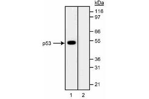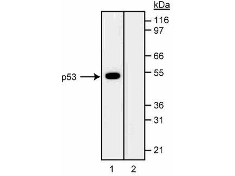 Positive control cell lines include SK-BR-3 breast carcinoma cells (ATCC HTB-30), A431 epidermal carcinoma cells (ATCC CRL-1555) and CEM human leukemia cells (ATCC CCL-119). MCF-7 breast carcinoma cells (ATCC HTB-22) are suggested as a negative control. Positive immunostaining is seen in a high proportion of breast and colon carcinomas. p53 staining is not typically detected in normal skin, brain, kidney, lung, stomach, or breast tissue.