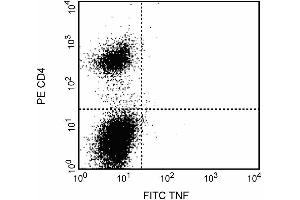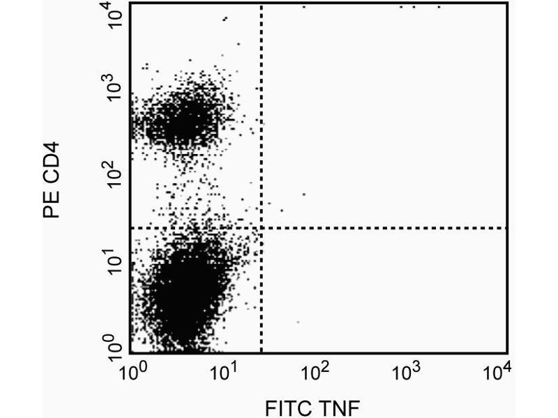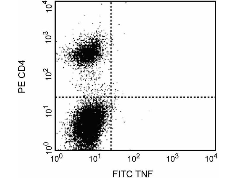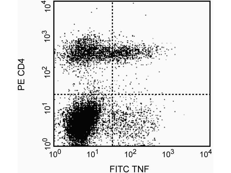 Blocking Control for Intracellular Staining: The purified MP6-XT22 antibody (ABIN967462) can be used as a blocking control to demonstrate specificity of TNF protein staining by directly conjugated -MP6-XT22 antibody. To perform this control, the fixed/permeabilized cells (~ 1 million) can be incubated with 1 -10 µg of unlabeled MP6-XT22 antibody (ABIN967462) for 20 minutes at 4°C, prior to staining with directly conjugated antibody (e.g., 0.1 -0.5 µg mAb/1 million cells). The intracellular cytokine staining technique and use of blocking controls are described in detail by C. Prussin and D. Metcalfe.