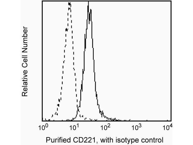 Reacts with human insulin-like growth factor-I (IGF-I) receptor alpha subunit (135 kDa). IGF-IRalpha is a glycoprotein complex composed of two extracellular alpha subunits and two transmembrane beta subunits. The transmembrane subunits play a role in tyrosine phosphorylation of several intracellular signaling proteins. IGF-IRalpha is structurally and functionally similar to insulin receptor and is expressed on a variety of human hematopoietic and non-hematopoietic cells. It mediates the effects of IGF-I and IGF-II on cellular growth. 1H7 does not cross react with human insulin receptor and it can block IGF-I or IGF-II stimulated cell growth. This antibody is routinely tested by flow cytometric analysis. Synonyms: IGF-I Receptor alpha