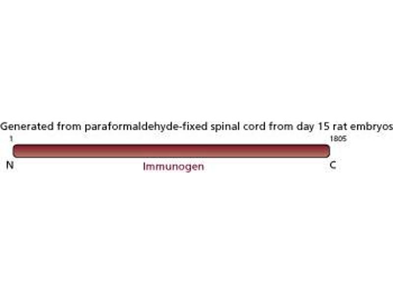 - Multipotential stem cells in the neural tube of the developing embryo give rise to the different neuronal cell types of the brain. Nestin is an intermediate filament protein which is abundantly expressed in neuroepithelial stem cells early in embryogenesis, but is absent from nearly all mature central nervous system (CNS) cells. After its down-regulation, GFAP and neurofilaments are expressed in differentiated astrocytes and neurons, respectively. Initial studies showed that the mouse anti-rat nestin antibody (clone Rat 401) recognized transient radial glial cells and dividing neuroepithelial stem cells in the embryonic rat CNS. Reportedly, Rat 401 has been used to analyze nestin expression in the developing rat nervous system and in immortalized CNS precursor cell lines (e.g such as in E11 rat CNS stem cells, but lost by postnatal day 6 (P6) in spinal cord and by P21 in the cerebellum). Although not expressed in normal adult CNS cells, nestin has been reportedly to be detectable in a variety of CNS tumors, suggesting that these tumors share gene expression patterns with primitive, undifferentiated CNS cells. Rat 401 positive cells have been reported to be found throughout the developing neural tube, but not in the adult CNS. More than 90% of dissociated E11 neural tube cells have been reported to be Rat 401 positive. Rat 401 recognizes rat nestin and has been reported not to cross-react with human nestin. Due to differential tissue expression, this antibody may recognize nestin as a doublet within a range of 198-260 kD.