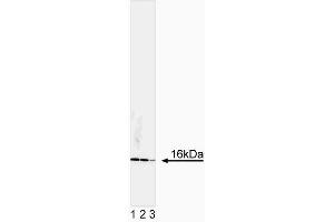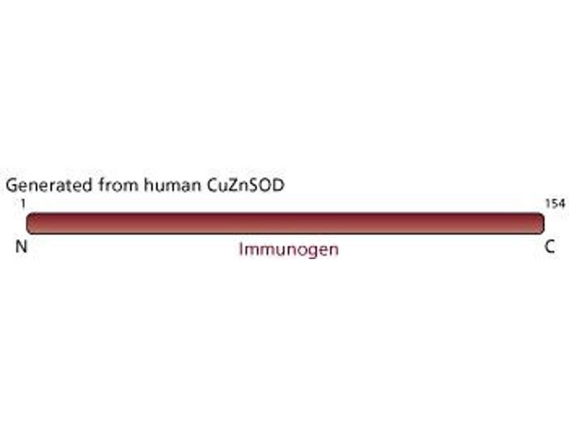 Applications include western blot analysis (1-2 µg/ml) of over-expressed human CuZnSOD. CuZnSOD is a homodimeric enzyme with a molecular weight of ~32 kDa. The two subunits associate noncovalently and are also stabilized by an intrachain disulfide bond. The molecular weight of each subunit is ~16 kDa.