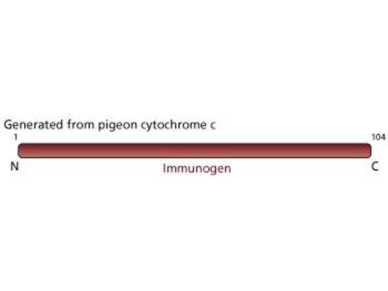Clone 7H8.2C12 recognizes the denatured form of pigeon, horse, rat, mouse and human Cytochrome c. It does not recognize the native form of Cytochrome c. Clone 7H8.2C12 recognizes an epitope within amino acids 93-104 (inclusive) of pigeon Cytochrome C, based on competitive ELISA results. Synthetic peptides corresponding to amino acids 1-80, 81-104 and 66-104 of pigeon Cytochrome c were used as immunogens. Clone 7H8.2C12 is used for western blot detection of Cytochrome c. Clone 6H2.B4, is used for immunoprecipitation. Cell lines P388D1 mouse lymphoma (ATCC CCL-46), HeLa human carcinoma (ATCC CCL-2), Jurkat T leukemia (ATCC TIB-152), and NIH/3T3 mouse fibroblast cells (ATCC CRL-1658) may be used as positive control cell lysates.