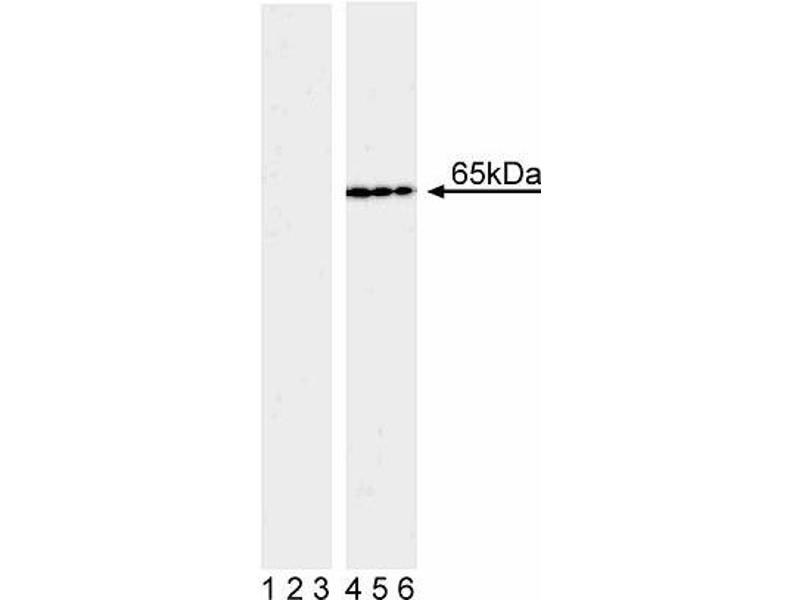 - Nuclear factor kB (NF-kB) is a ubiquitously expressed transcription factor that regulates the expression of 200-300 genes. It is crucial for basic cellular responses to stress and pathogens, such as proliferation, survival, development, and apoptosis. The most studied NF-kB complex consists of the p50 (also known as NF-kB1) and p65 (also known as REL-A) subunits, both containing a 300-amino acid region with homology to the Rel proto-oncogene product (RH domain). The RH domain contains motifs for dimerization, nuclear localization, and binding to specific DNA sequences. In addition to the RH domain, the p65 subunit contains the transactivation domain, which is responsible for the interaction with the inhibitor IkB and which contains phosphorylation sites. In most cell types, the p50/p65 heterodimer is located within the cytoplasm complexed to IkB. This complex prevents nuclear translocation and activity of NF-kB. In response to stimuli such as cytokines, LPS, DNA damage, and viral infections, IkB is phosphorylated at critical residues. This phosphorylation induces dissociation of the IkB/NF-kB complex, allowing the free heterodimeric NF-kB to translocate to the nucleus. Furthermore, optimal activation of NF-kB requires phosphorylation in the transactivation domain of p65. In the nucleus, activated NF-kB dimers bind to the kB sites within promoters and enhancers and function as transcriptional activators. The J144-460 monoclonal antibody recognizes the phosphorylated serine 536 (pS536) in the transactivation domain of human NF-kB p65.