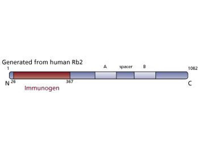 - The pRb2 protein shows a high degree of identity with pRb and the related p107 protein. Both pRb and p107 bind to the adenovirus E1A, SV40 large T antigen, and papillomavirus E7 viral proteins. This binding initiates the release of transcription factors which are required for the expression of cell cycle-regulated genes. pRb, pRb2, and p107 interact with a conserved motif in these three viral proteins. In the E1A protein, this area is known as transforming domain 2, which is required for growth activation. The E1A-binding domain in pRb and p107 is a conserved motif known as the pocket region which consists of conserved A and B regions separated by non-conserved spacers of different sizes in pRb and p107. It is the pocket regions of pRb and p107 that associate with the E2F transcription factor. pRb2 also contains the conserved pocket region suggesting that it has functional similarities to pRb and p107. This antibody is routinely tested by western blot analysis.