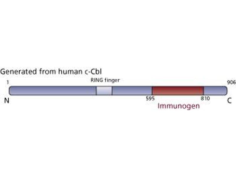 - Cbl was identified in the genome of a transforming retrovirus from a mouse pre-B cell lymphoma. The product of mammalian c-cbl, p120[cbl], is a widely expressed cytoplasmic protein with several distinctive domains including a RING finger motif and a large proline-rich domain. Although the normal cellular function of c-Cbl has not yet been determined, it associates with many well known signal transduction proteins. In lymphoid cells, c-Cbl is a substrate of TCR-activated protein tyrosine kinases. In addition, stimulation with EGF, PDGF, FGF, or NGF results in tyrosine-phosphorylation of c-Cbl in lymphoid and other cell types. It forms a signaling complex with Grb2 in T cells and is a SH3 and SH2 binding protein which associates with many other cytoplasmic signaling proteins including Btk, Src, fyn, lck, and the beta isoform of PI-3 kinase. Thus, c-Cbl may be an important adaptor protein in growth factor and T-cell receptor signaling pathways. This antibody is routinely tested by western blot analysis.