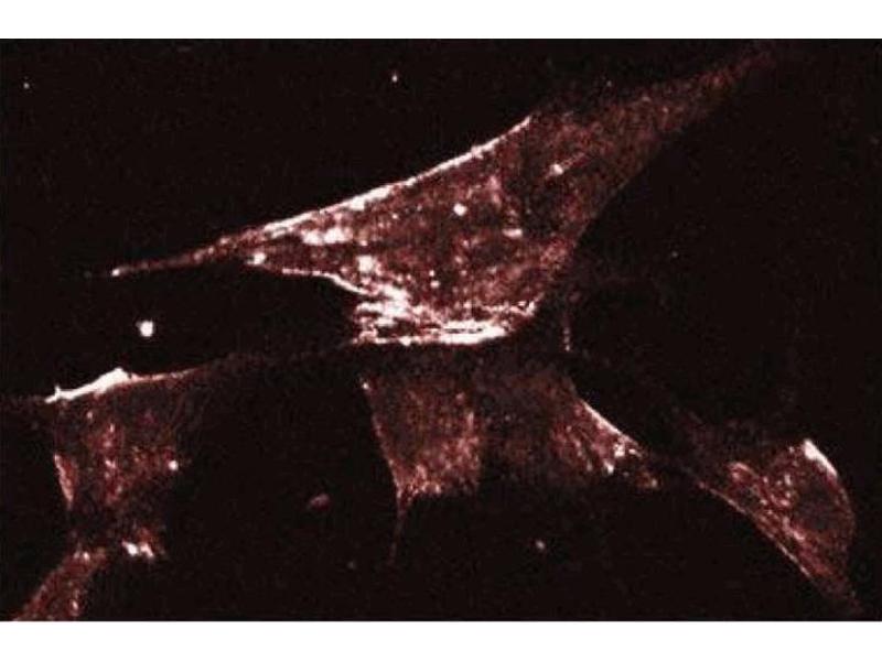 - Identified as a tyrosine phosphorylated protein in Rous sarcoma virus-transformed chick embryo fibroblasts (CEF), caveolin is now known to be ubiquitously expressed. Caveolin (also known as VIP21) localizes to non-clathrin membrane invaginations (caveolae) on the inner surface of the plasma membrane. This transmembrane protein plays a structural role in these specializations. Caveolin is also present at the trans-Golgi network (TGN) and similar quantities are found in apically and basolaterally destined transport vesicles. Caveolin is part of a complex containing glycosylphosphatidylinositol (GPI)-linked molecules and cytoplasmic signaling proteins. Caveolin is a transmembrane adaptor molecule that can simultaneously recognize GPI-linked proteins and interact with downstream cytoplasmic signaling molecules, such as c-yes, Annexin II, and hetero-trimeric G proteins. Caveolin-1 can generate two forms, alpha and beta, due to alternate splicing of the mRNA. Caveolin-1 forms large lipid-binding homo-oligomers which are believed to play a role in caveolae formation. It may also function as a scaffolding protein which concentrates and organizes signaling molecules, a role supported by the fact that caveolin-1 interacts directly with inactive Ras and G-protein alpha subunits. This antibody is routinely tested by western blot analysis.