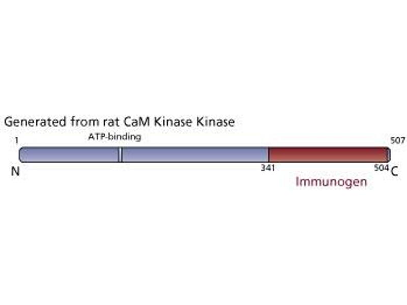 - Ca2+/Calmodulin (CaM)-dependent kinases are multifunctional kinases involved in a myriad of cellular functions such as neurotransmitter synthesis, long-term potentiation, and formation of spatial learning. A 68kDa CaM Kinase Kinase with homology to the Ca2+/CaM-dependent kinases, phosphorylates and activates Ca2+/CaM-dependent protein kinases I and IV, but not type II. This phosphorylation occurs on Ser/Thr residues and is Ca2+ and CaM dependent. CaM Kinase Kinase is abundant in brain tissue, and is thought to be an upstream regulator in the Ca2+/CaM-dependent neural processes. This antibody is routinely tested by western blot analysis.
