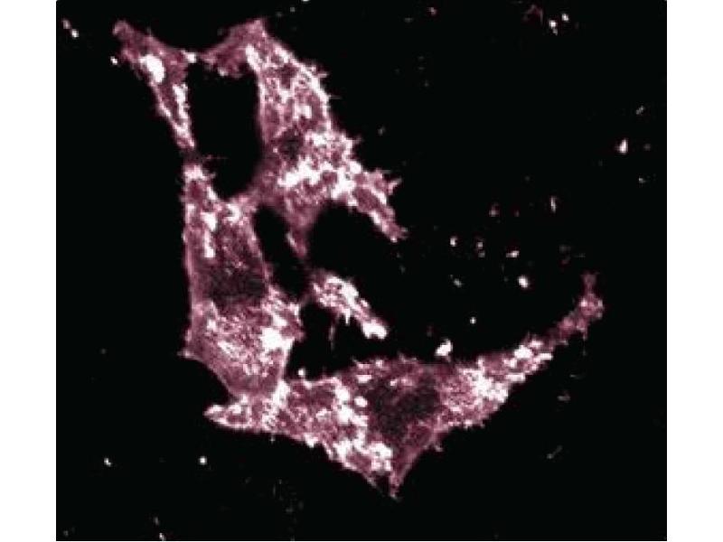 - First described as an 80kDa protein concentrated in the apical cytoskeletal region of intestinal brush border cells, ezrin is now recognized as a major substrate of protein tyrosine kinases, such as the epidermal growth factor (EGF) tyrosine kinase. Ezrin is expressed at high levels in intestine, kidney, and placenta. In placenta, ezrin is present as monomers and non-covalent oligomers in tight association with actin microfilaments. In the human epidermoid carcinoma cell line A431, microvilli-like structures appear within 30 seconds after the addition of EGF. These structures give way to membrane ruffles after 2-5 minutes, followed by cell rounding after 10-20 minutes. At the same time, ezrin is recruited into these structures and oligomers are formed following its tyrosine phosphorylation. It is thought that tyrosine phosphorylation triggers the formation of ezrin oligomers.