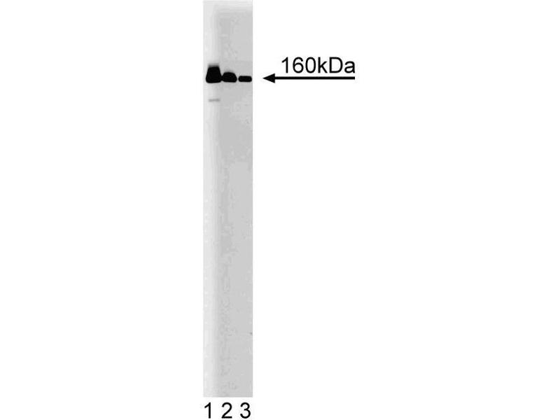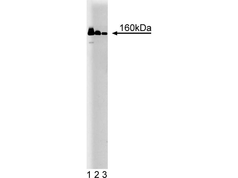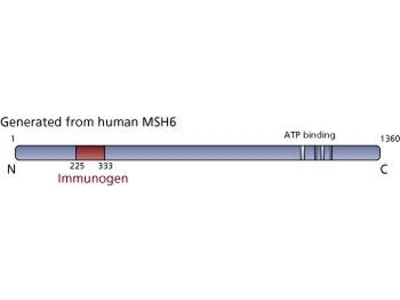 DNA mismatch repair in bacteria is carried out by the MutL, MutH, and MutS proteins. Initial binding of MutS to the mismatched DNA is followed by binding of the MutH endonuclease and MutL. Together these proteins form a complex that mediates excision repair. Mutations or deficiencies of any of these bacterial proteins results in a mutator phenotype that is characterized by genetic instability. MSH2, MSH3, and MSH6 are human homologs of MutS, while MLH1, PMS1, and PMS2 are homologs of MutL. As a heterodimer with MSH2, MSH6 binds to DNA containing G/T mismatches. The MSH2-MSH6 complex recognizes single-base mispairs and insertion/deletion loops. Binding of this complex induces conformational changes in the DNA that lead to the binding of an MLH-PMS1 complex and excision repair. Mutations in the human genes are associated with hereditary nonpolyposis colon cancer (HNPCC), a common hereditary disease in humans. HNPCC is characterized by frequent microsatellite mutations that arise from somatic mutation due to a replication error (RER+) phenotype. This phenotype is analogous to the bacterial system and is directly linked to DNA mismatch repair deficiencies. This antibody is routinely tested by western blot analysis.