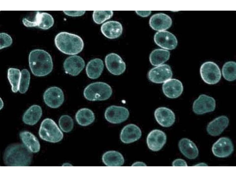 A specialized extension of the ER, the nuclear envelope (NE) forms the nuclear compartment boundary in eukaryotic cells. It contains numerous pore complexes and the nucleoplasmic side is linked to nuclear lamina. The nuclear lamina composes the structural framework for the NE and serves as a chromatin anchor site, thus, playing a major role in interphase nuclear organization. Many proteins are associated with lamina, particularly the LAPs (Lamina-Associated Polypeptides). LAP2 (also known as LAP2beta) is a hydrophilic protein with a single transmembrane segment near the C-terminus. Thus, it has been defined as a type II integral membrane protein with the majority of its structure exposed to the nucleoplasm. LAP2 binding to lamins contributes to the attachment of the nuclear lamina to the inner nuclear membrane. LAP2 also binds to chromatin, implying its role in chromosomal organization during mitosis. Mitotic phosphorylation of LAP2 regulates its binding to lamins and chromosomes during the disassembly and reassembly of mitosis. Thus, LAP2 is a nuclear protein that plays a role in the organization of the NE during cell cycle progression.