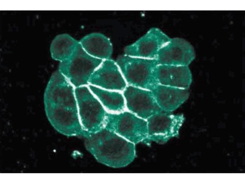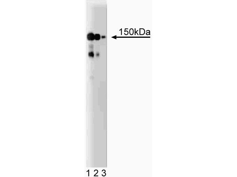 Integrins are a family of dimeric proteins that mediate cell-to-cell and extracellular matrix adhesion. They consist of a large alpha chain that is non-covalently associated with a smaller beta chain which is used to define integrin subfamilies. These molecules exhibit a wide range of expression throughout development and adulthood. VLA-2 (very late antigen), a member of the integrin superfamily, was identified on activated T cells, but has since been reported to be on various cell types. VLA-2 is reported to be a heterodimer of integrin alpha2 (CD49b) and integrin beta1 (CD29) subunits. The alpha2 chain contains a large extracellular domain, a transmembrane domain, and a short cytoplasmic tail. VLA-2 functions as a collagen receptor on platelets and fibroblasts, as well as a collagen and laminin receptor on endothelial and epithelial cells. On activated T cells, VLA-2, like LFA-1, exhibits increased number and affinity of ligand binding. Interactions of these molecules with their extracellular matrix ligands is important for directing effector T cells to their target tissues and to provide co-stimulatory signals. Thus, VLA-2 not only plays an important role in cellular adhesion, but may function in intracellular signal transmission. This antibody is routinely tested by western blot analysis.