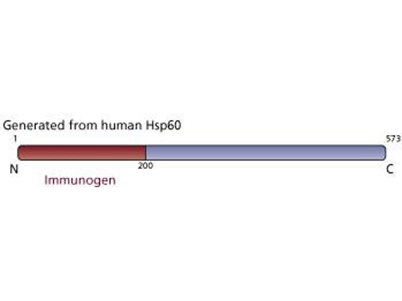 - Heat shock proteins (Hsp) are a set of highly conserved proteins that include constitutively expressed (Hsp60, Hsp70, and Hsp90) and stress-induced (Hsp27 and Hsp72) proteins. Hsp60 is localized to the mitochondria, where it promotes mitochondrial protein folding and facilitates proteolytic degradation of misfolded or denatured proteins. It binds Hsp10, which regulates the substrate binding and ATPase activity of Hsp60. In HeLa and Jurkat mitochondria, Hsp60 associates with caspase-3 to form a complex that dissociates and releases from the mitochondria during apoptosis. In addition, Hsp60 accelerates the maturation of procaspase-3 through its ATP-dependent foldase activity. In addition to its role in protein folding, Hsp60 has also been implicated in immune function. In macrophages, its binding to the toll-like receptor-4 complex induces production of TNFalpha and nitric oxide and stimulation of a proinflammatory response. Thus, the protein folding function of Hsp60 is involved in mitochondrial protein folding in both normal and apoptotic cells, while release of Hsp60 during necrosis is thought to stimulate a proinflammatory response.