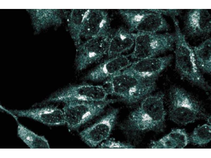 ATPases that belong to the ATPase associated with different cellular activities (AAA) family are homo-oligomeric proteins that have roles in cell cycle regulation, protein degradation, organelle biogenesis, and vesicle mediated-protein transport. Valosin containing protein (VCP) is a AAA family member that is found as a hexamer in rat liver. In vitro, VCP catalyzes the hydrolysis of ATP, but this activity is distinct from classical transport ATPases. VCP protein is found primarily in the transitional elements between the rough and smooth ER (TER), but stimulation with EGF leads to VCP translocation to the nucleus. Antibodies to VCP can perturb cell-free formation of transition vesicles from isolated TER of rat liver, and can inhibit transfer of material from ER to Golgi in a reconstituted membrane system. VCP is phosphorylated after T-cell activation, and PTPH1 dephosphorylation of VCP correlates with suppression of cell growth. In addition, the N-terminal region of VCP binds to the DNA damage repair protein, BRCA1. Thus, VCP may have roles in both ER protein transport and nuclear function, which are important for cell growth and survival. This antibody is routinely tested by western blot analysis.