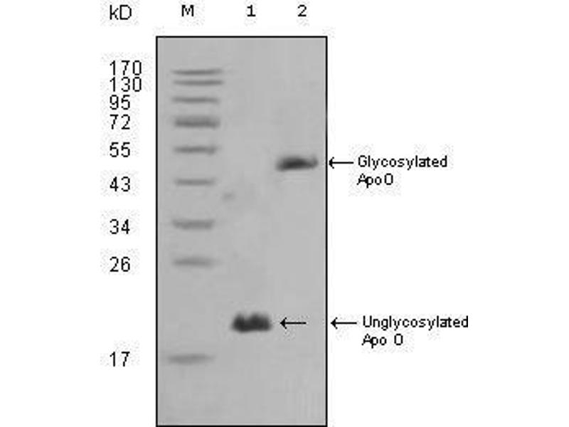 ApoO: apolipoprotein O, also known as MYO25, FAM121B, MGC4825. Entrez Protein NP_077027. It is a chrondroitin-sulfate chain containing member of the apolipoprotein family and is an original glycoprotein up-regulated by diabetes in human Heart. Promotes cholesterol efflux from macrophage cells. Detected in HDL, LDL and VLDL. Secreted by a microsomal triglyceride transfer protein (MTTP)-dependent mechanism, probably as a VLDL-associated protein that is subsequently transferred to HDL. May be involved in myocardium-protective mechanisms against lipid accumulation.
