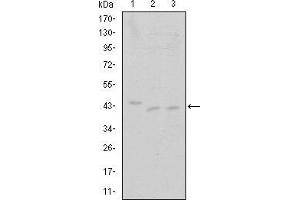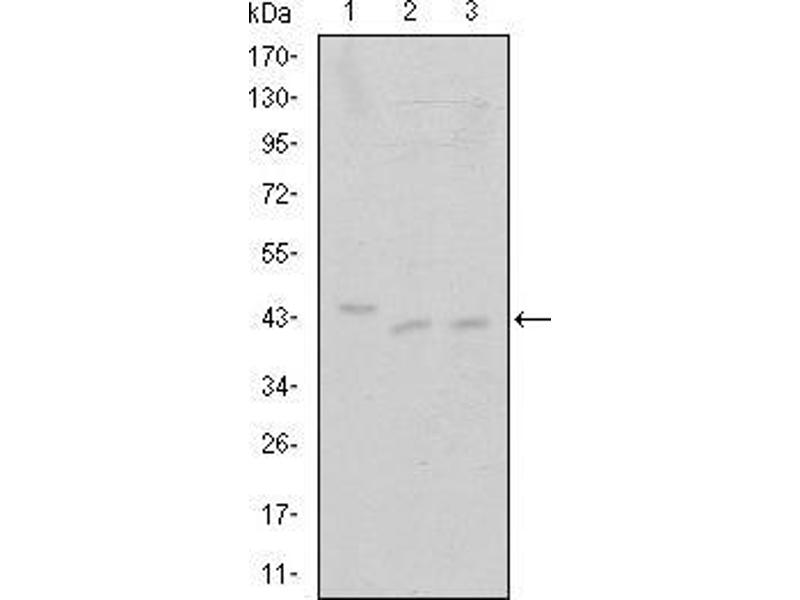 The protein encoded by this gene is a member of the cyclin-dependent protein kinase (CDK) family. CDK family members are highly similar to the gene products of S. cerevisiae cdc28, and S. pombe cdc2, and known as important cell cycle regulators. This kinase was found to be a component of the multiprotein complex TAK/P-TEFb, which is an elongation factor for RNA polymerase II-directed transcription and functions by phosphorylating the C-terminal domain of the largest subunit of RNA polymerase II. This protein forms a complex with and is regulated by its regulatory subunit cyclin T or cyclin K. HIV-1 Tat protein was found to interact with this protein and cyclin T, which suggested a possible involvement of this protein in AIDS. (provided by RefSeq)Tissue specificity: Ubiquitous.