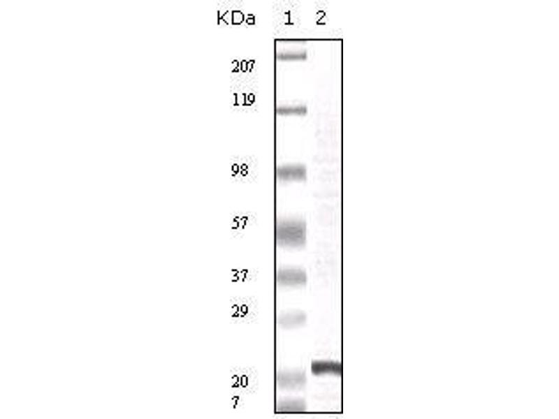 FGF2 is a member of the fibroblast growth factor (FGF) family. FGF family members bind heparin and possess broad mitogenic and angiogenic activities. FGF2 is a single-chain polypeptide growth factor that plays a significant role in the process of wound healing and is a potent inducer of anguogenesis. Due to its basic pH , the factor is named FGF-2 (basic FGF, bFGF).Several different forms of the human protein exist ranging from 18-24 kDa in size due to the use of alternative start sites within the fgf-2 gene. It has a 55 percent amino acid residue identity to FIBROBLAST GROWTH FACTOR 1 and has potent heparin-binding activity. The growth factor is an extremely potent inducer of DNA synthesis in a variety of cell types from mesoderm and neuroectoderm lineages. It was originally named basic fibroblast growth factor based upon its chemical properties and to distinguish it from acidic fibroblast growth factor (FIBROBLAST GROWTH FACTOR 1).
