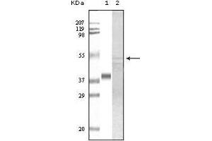 GSK3 alpha (Glycogen synthase kinase 3 alpha), with 483-amino acid protein (about 53 kDa), belongs to the Ser/Thr family of protein kinases, Cdc2/cdkx subfamily,GSK3 subsubfamily, which also includes GSK3 beta.GSK3 is a multifunctional serine/threonine kinase that is usually inactivated by serine phosphorylation in response to extracellular cues. GSK3 is a key regulator of numerous signalling pathways, including cellular responses to Wnt, receptor tyrosine kinases and G-protein-coupled receptors and is involved in a wide range of cellular processes, ranging from glycogen metabolism to cell cycle regulation and proliferation.GSK3 alpha is implicated in the control of several regulatory proteins including glycogen synthase and transcription factors.