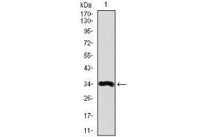 - Purified antibody in PBS with 0.05 % sodium azide.