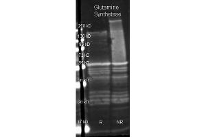 Application Note: Anti-Glutamine Synthetase has been tested by western blot and is suitable to be assayed against 1.0 μg of Glutamine Synthetase [Microbial] in a standard ELISA using Peroxidase conjugated Affinity Purified anti-Goat IgG [H&L] (Rabbit) code #605-4302 and (ABTS (2,2'-azino-bis-[3-ethylbenthiazoline-6-sulfonic acid]) code # ABTS-100 as a substrate for 30 minutes at room temperature. A working dilution of 1:10,000 to 1:40,000 of the reconstitution concentration is suggested for this product.