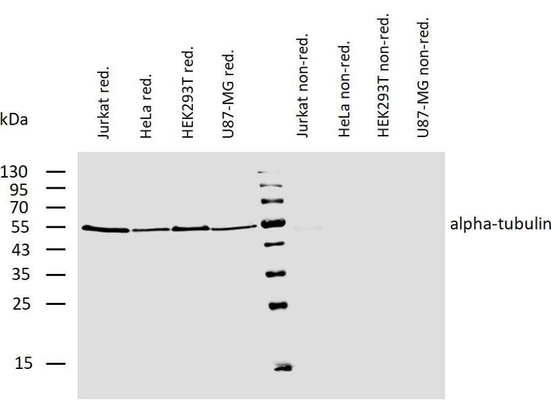 TUBA1 Reactivity: Human, Mouse, Pig, Saccharomyces cerevisiae, Arabidopsis, Nicotiana tabacum, Eisenia fetida, Paramecium, Turkey WB, IHC (p), ICC, ICFC Host: Mouse Monoclonal TU-01 Biotin