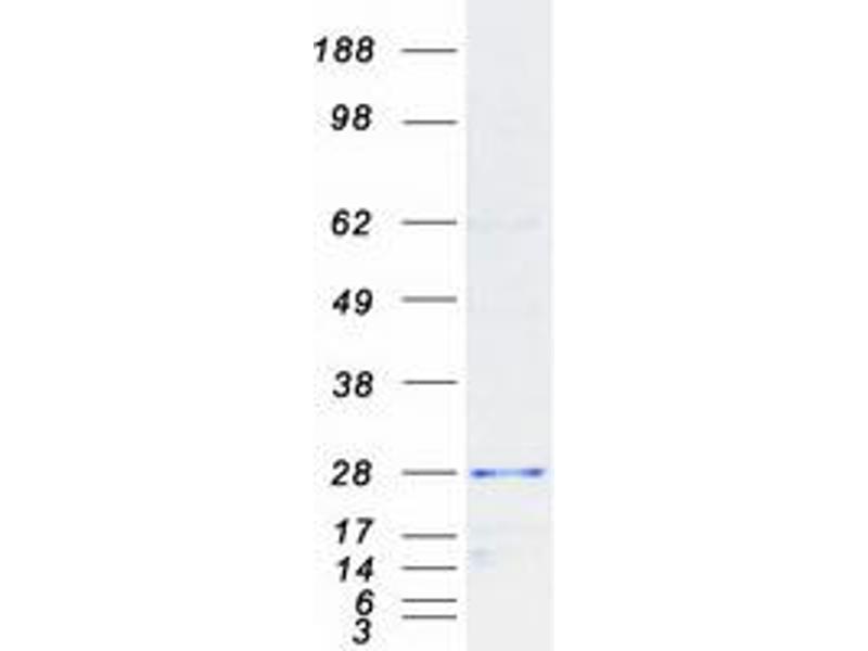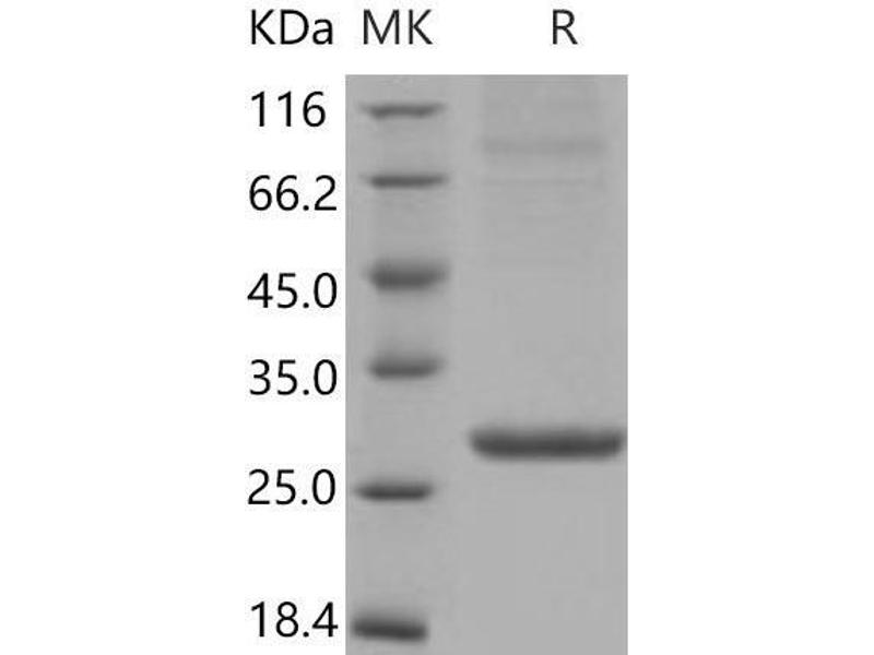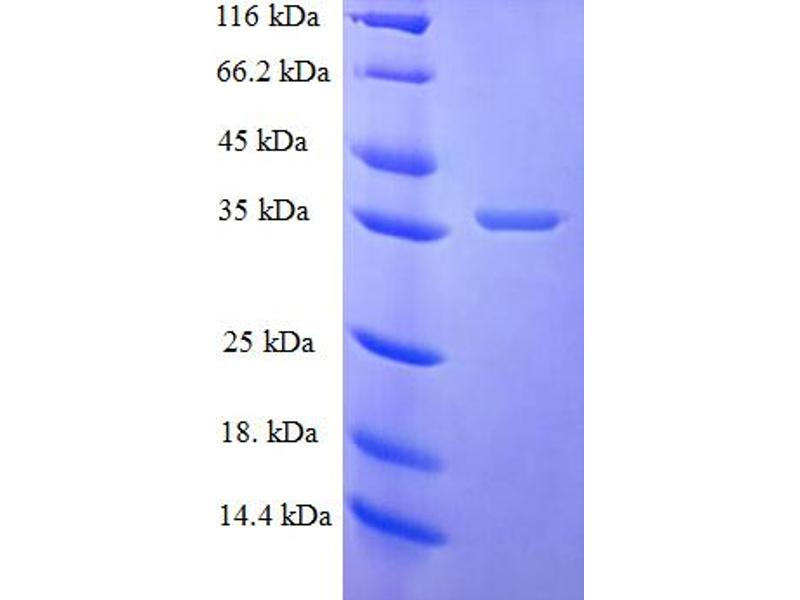 The purity of the protein is greater than 85 % as determined by SDS-PAGE and Coomassie blue staining.
