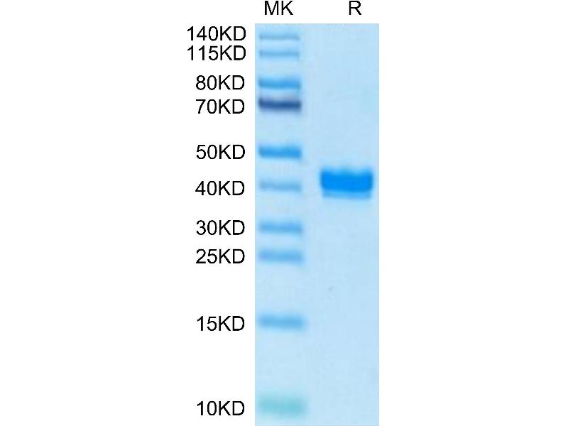 The purity of the protein is greater than 95 % as determined by SDS-PAGE and Coomassie blue staining.