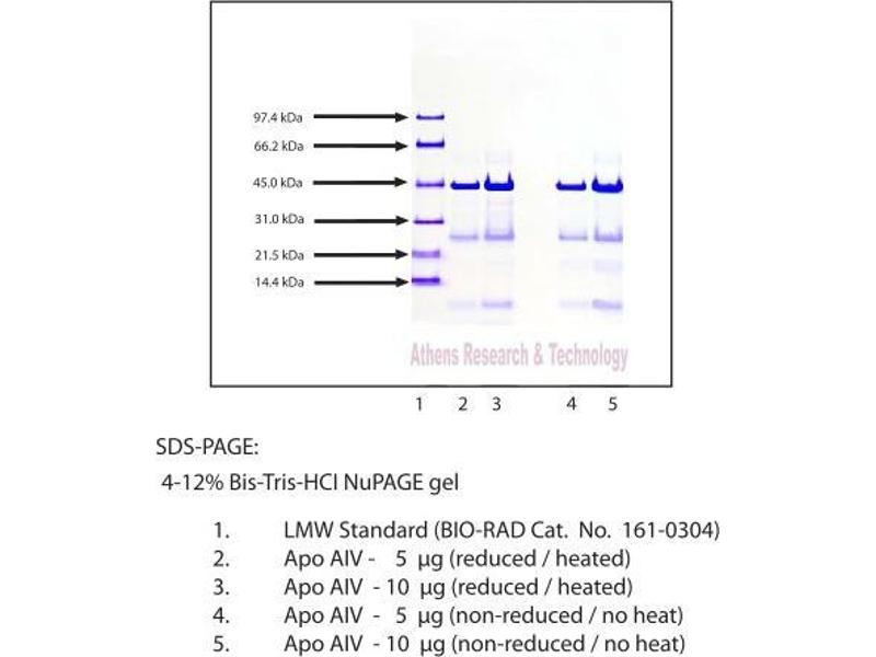 Apoliprotein (apo) A-IV gene contains 3 exons separated by two introns. A sequence polymorphism has been identified in the 3'UTR of the third exon. The primary translation product is a 396-residue preprotein which after proteolytic processing is secreted its primary site of synthesis, the intestine, in association with chylomicron particles. Although its precise function is not known, apo A-IV is a potent activator of lecithin-cholesterol acyltransferase in vitro. [provided by RefSeq, Jul 2008].