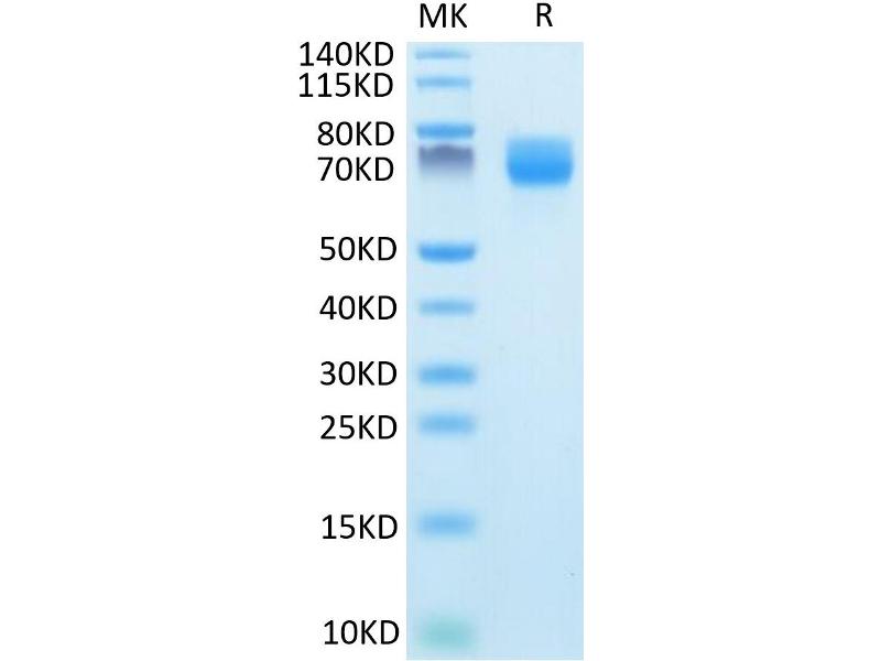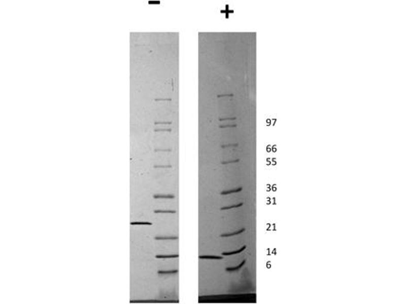 The purity of the protein is greater than 95 % as determined by SDS-PAGE and Coomassie blue staining.