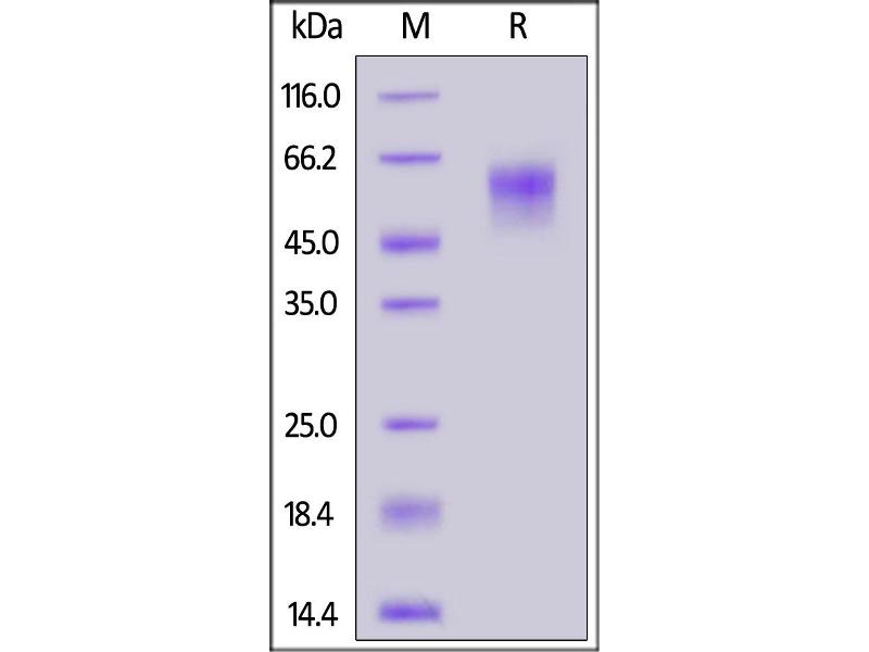 The purity of the protein is greater than 95 % as determined by SDS-PAGE and Coomassie blue staining.