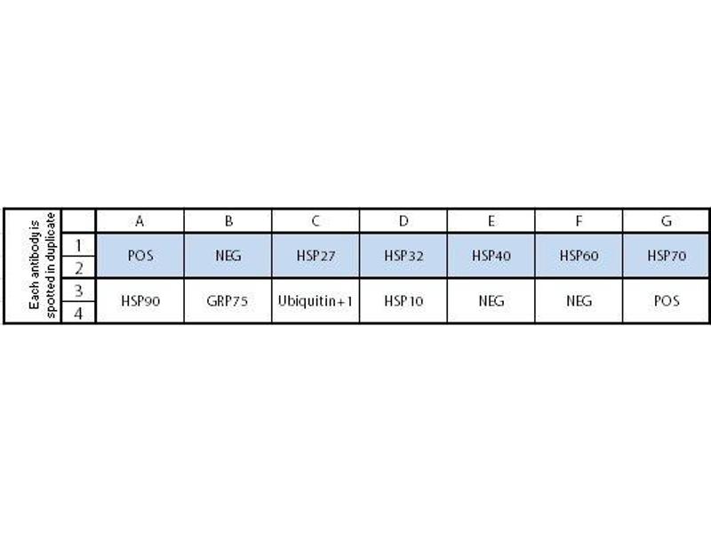 - HSP10, HSP27, HSP32, HSP40, HSP60, HSP70, HSP90, GRP75, Ubiquitin+1