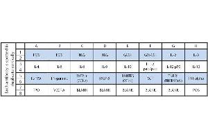 - GCSF, GM-CSF, IL-2, IL-3, IL-4, IL-5, IL-6, IL-9, IL-10, IL-12 p40/p70, IL-12 p70, IL-13, IL-17A, IFN-gamma, MCP-1 (CCL2), MCP-5, RANTES (CCL5), SCF, TNF RI (TNFRSF1A), TNF alpha, Thrombopoietin (TPO), VEGF-A