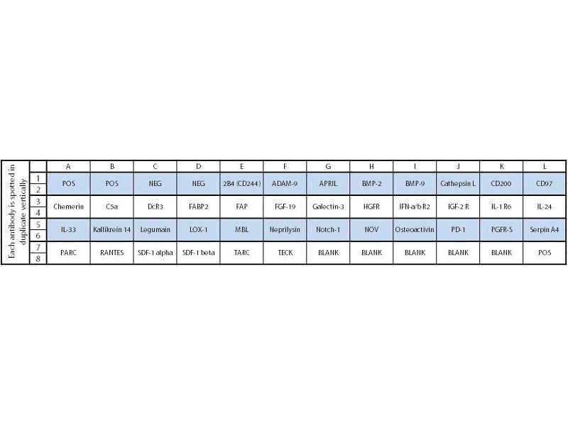 We offer a wide variety of arrays optimized for specific pathways and biological processes (e.g. Inflammation, Apoptosis) or other well characterized research fields. These Arrays are either glass slide-based or membrane-based and use either chemiluminescence or fluorescence for detection depending on the researchers needs. For further Information check out our resource page "Antibody Array", or contact our customer support.