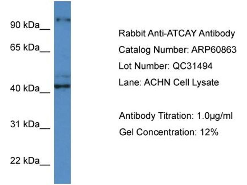 Quickly find the right antibody using our search, filter, and comparison tools. Each product page provides detailed validation data, literature references, and customer feedback. Unlike comparison-only resources, you can conveniently purchase antibodies directly through our site. Choose from polyclonal, monoclonal, or recombinant ATCAY antibodies derived from various hosts such as Rabbit, Mouse. Browse our products below and order directly to support your research with confidence.