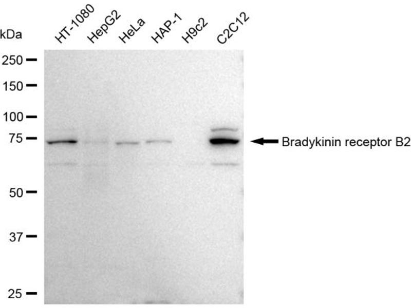 Explore reliable BDKRB2 antibodies from a broad selection of renowned manufacturers. Our portfolio enables accurate BDKRB2 detection across multiple species, including Human, Mouse, Rat, Cow, and supports diverse research applications such as WB, FACS, IF (cc), IF (p), IP.