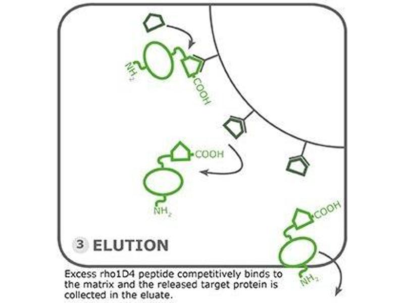 Note: Always prepare fresh. The recommended concentration of rho1D4 peptide in the elution buffer is 200 μM-1 mM. See the rho1D4 peptide Datasheet for further instructions to reconstitute the lyophilized peptide.