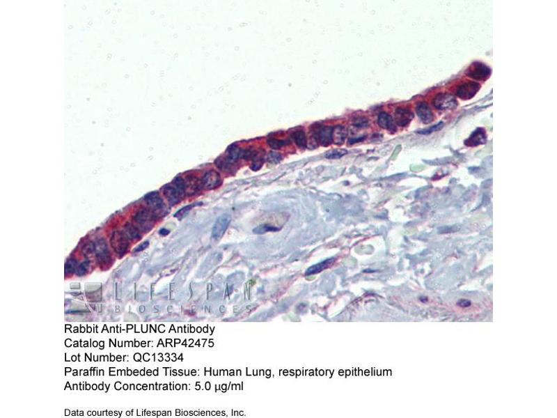 : "Antimicrobial activity of PLUNC protects against Pseudomonas aeruginosa infection." in: Journal of immunology (Baltimore, Md. : 1950), Vol. 187, Issue 1, pp. 382-90, (2011) (PubMed).Aliases for BPIFA1 Antibodies