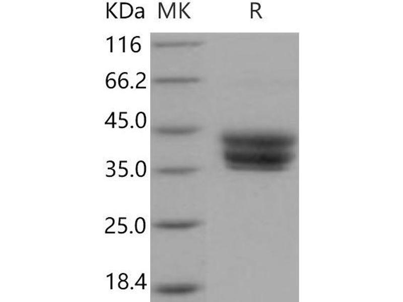 The purity of the protein is greater than 95 % as determined by SDS-PAGE and Coomassie blue staining.