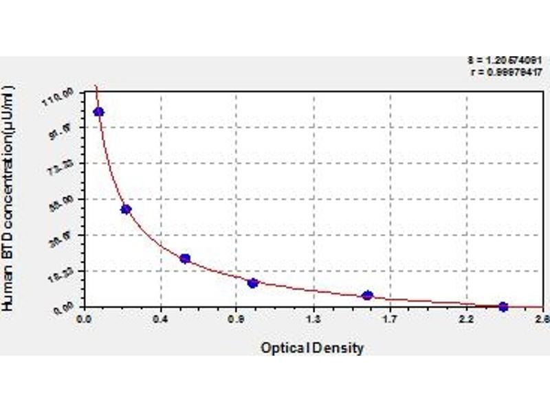 Discover our premium BTD ELISA kits designed for precise and reproducible BTD quantification. Our portfolio, sourced from a wide range of trusted manufacturers, enables reliable detection across various species such as Human, Cow, Mouse, Rat and accommodates numerous sample types including Plasma, Serum, Tissue Homogenate.