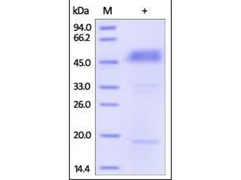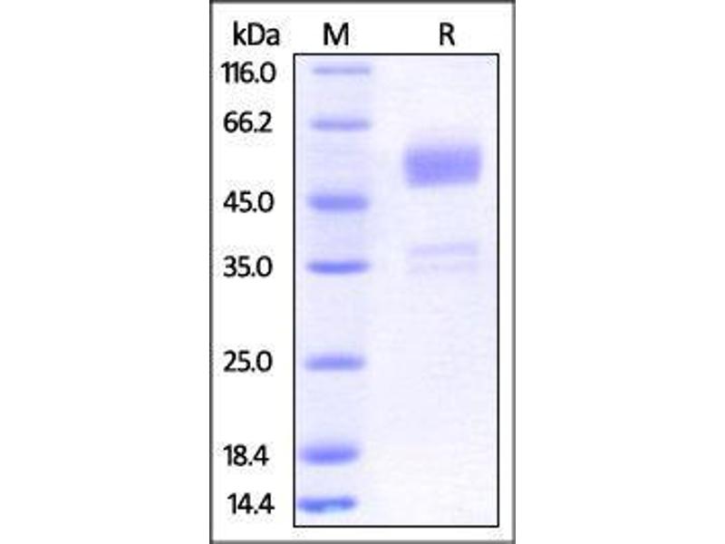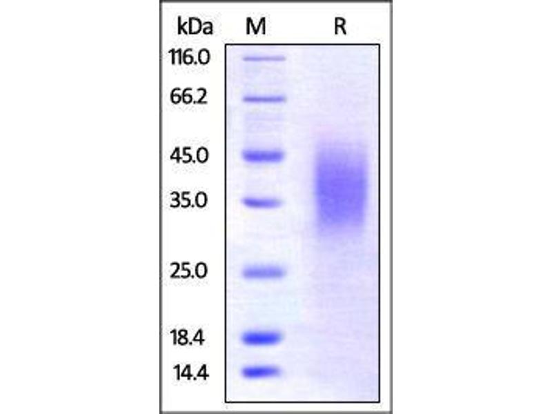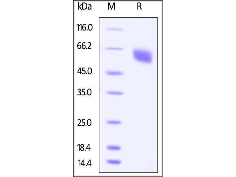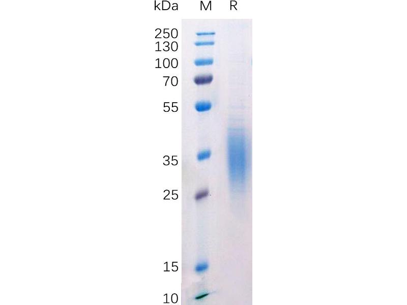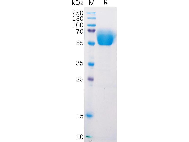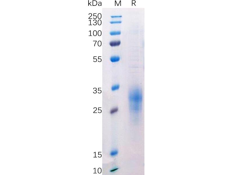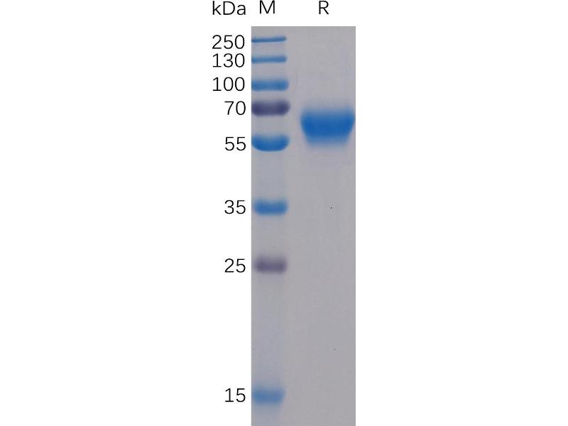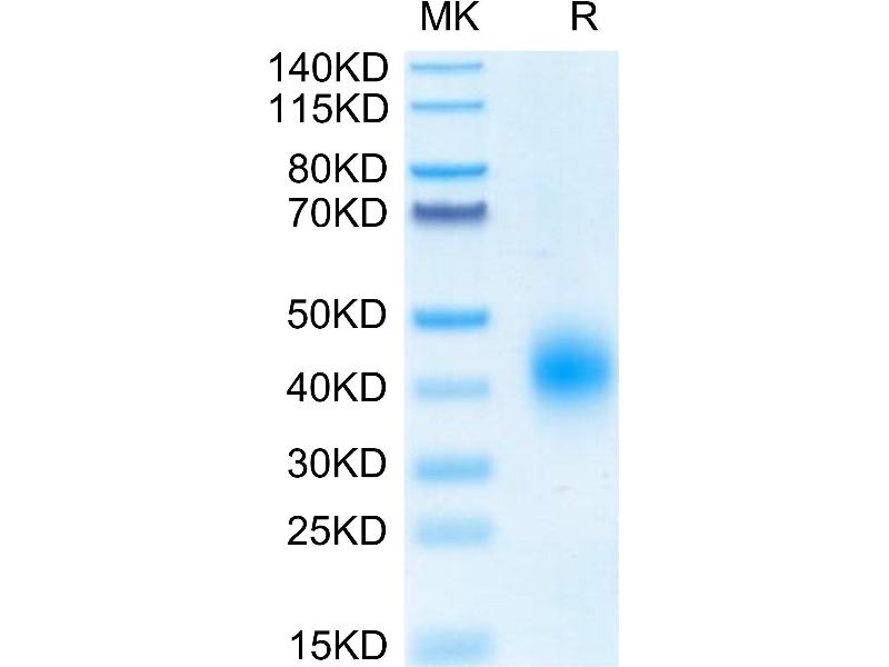The purity of the protein is greater than 95 % as determined by SDS-PAGE and Coomassie blue staining.