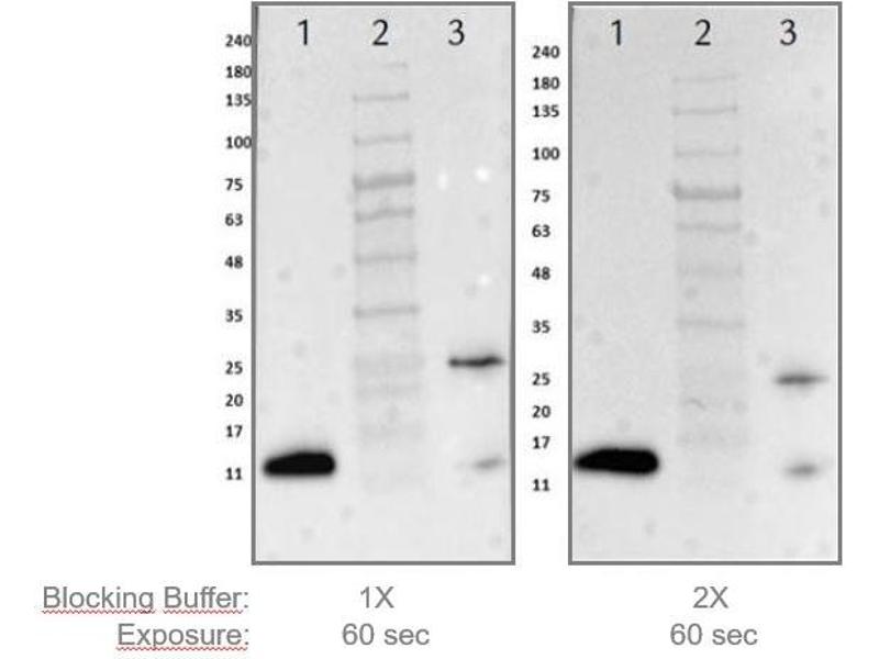Other: Optimum performance is achieved using this product undiluted. However, this blocking solution can often be diluted 1:1 in TBS without a significant loss of performance.