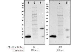 - Fluorescence technology is widely used to detect proteins in both the visible and near-infrared ranges. This product allows for superior signal detection and lower background noise when fluorochrome conjugated antibodies are used to visualize proteins in western blotting and other applications. Antibody conjugates prepared with IRDye® 800 and IRDye® 700DX (Licor), Cy2™, Cy3™, Cy3.5™, Cy5™ and Cy5.5™ (GE Healthcare), DyLight™405, DyLight™ 549, DyLight™ 649, DyLight™ 680, and DyLight™ 800 (Thermo Fisher/Pierce) and Alexa Fluor® 488, Alexa Fluor® 532, Alexa Fluor® 546, Alexa Fluor® 647 and Alexa Fluor® 680 (Invitrogen/Molecular Probes) have been validated on various platforms using this product with superior results compared to other commercially available products. In the infrared range, where little to no autofluorescence occurs, specific signal is sharply evident from any background giving the best possible signal-to-noise ratio. This allows for detection levels in the picogram range which rivals the sensitivity of chemiluminescence on film for western blotting. Superior results are also seen when this product is used for simultaneous labeling (multiplex) in western blots or microscopy using various fluorochrome combinations for multicolor imaging. Membranes blocked with this product can be dried and are very stable. Membranes that are stored protected from light can be re-washed and/or rescanned.