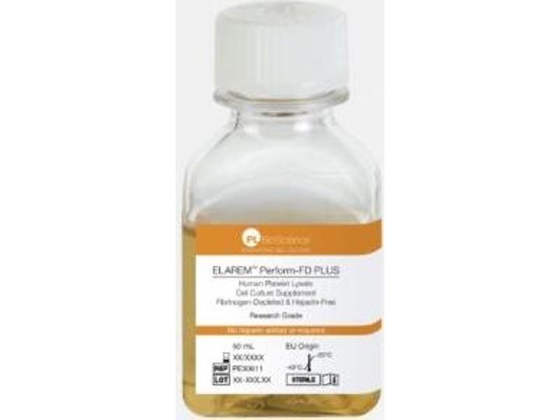 ELAREM™ Perform-FD PLUS Research Grade is a fibrinogen-depleted and anticoagulant-free Human Platelet Lysate of EU origin. As a xeno-free and easy-to-use cell culture supplement, ELAREM™ Perform-FD PLUS Research Grade supports the efficient and safe in vitro expansion of various primary cells and cell lines.