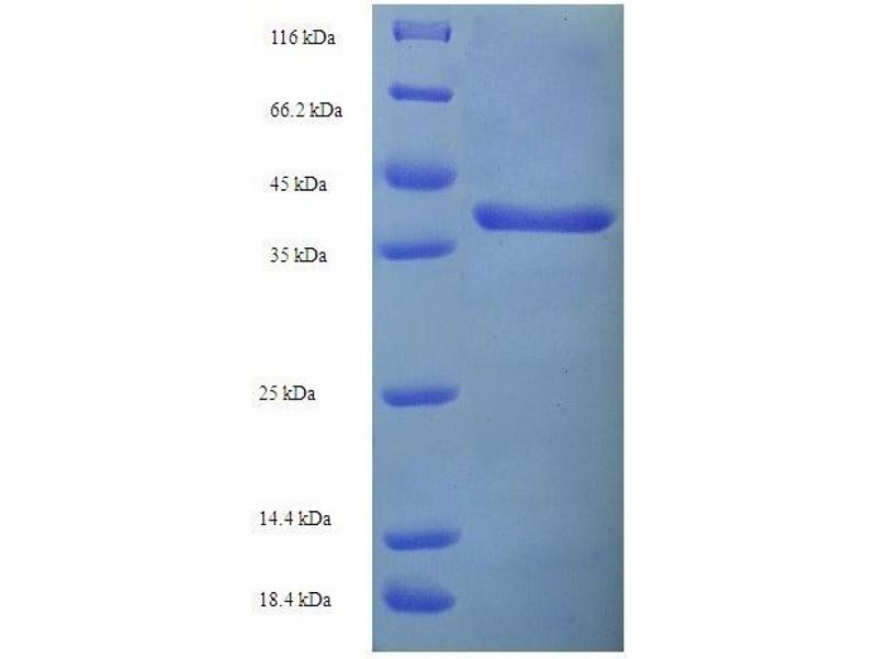 The purity of the protein is greater than 95 % as determined by SDS-PAGE and Coomassie blue staining.